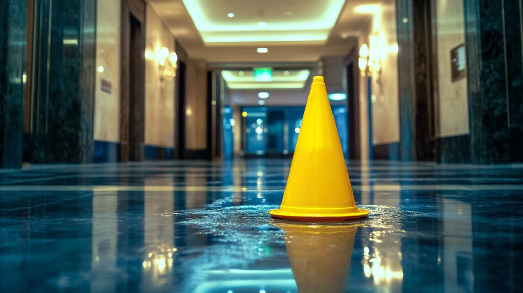 - Mopped areas left wet, or no signs posted indicating wet and slippery floors